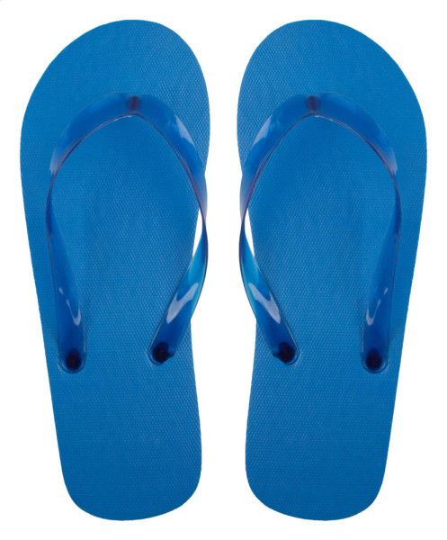 Unisex beach slippers with transparent PVC straps in matching colour. Made of PE.