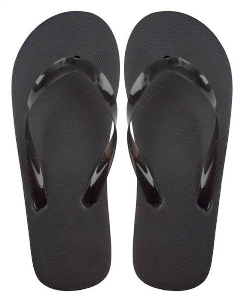 Unisex beach slippers with transparent PVC straps in matching colour. Made of PE.