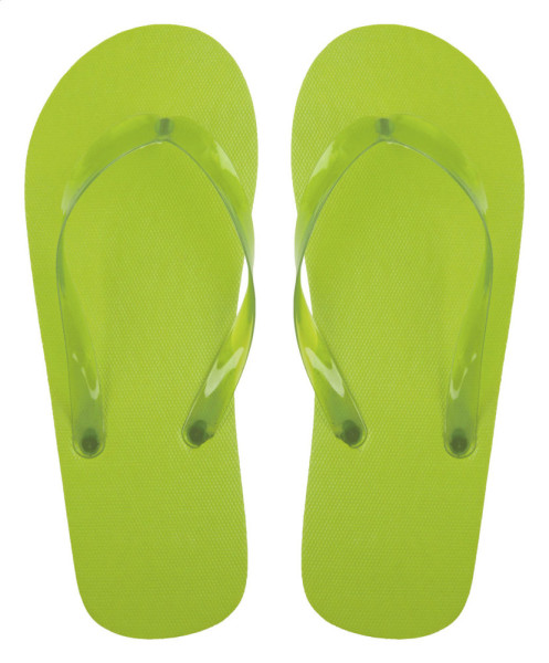 Unisex beach slippers with transparent PVC straps in matching colour. Made of PE.