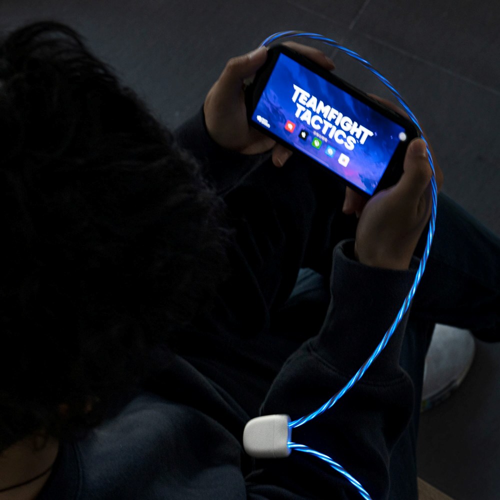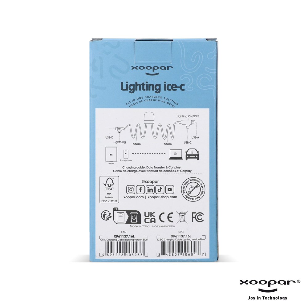 Introducing the Xoopar Light up charging cable! With a length of 2x 50cm, it's your go-to for seamless charging and CarPlay functionality. Enjoy dual input/output, fast charging up to 27W. The speed of the LED light in the cable indicates the speed at which your device is chargin. Crafted from recycled plastic.