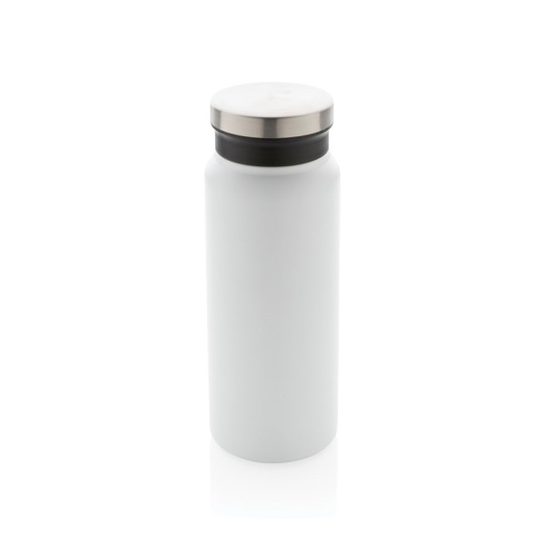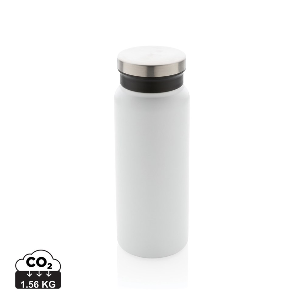 This RCS Recycled stainless steel vacuum bottle comes with a secure screw-on lid that features a wide opening for easy cleaning and filling. The additional PP insert ensures that the bottle is leakproof. This bottle is made from recycled stainless steel and features a double-wall construction to keep your favourite beverages warm for up to 5 hours or cold for up to 15 hours. Made with RCS (Recycled Claim Standard) certified recycled materials. RCS certification ensures a completely certified supply chain of the recycled materials. Total recycled content: 77% based on total item weight. BPA free. Capacity 600ml. Including FSC®-certified kraft gift box.