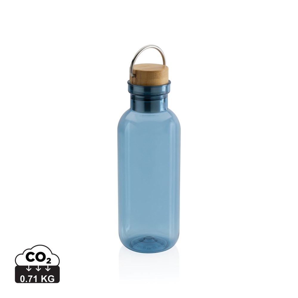 This RPET water bottle is single-wall constructed and features a stylish FSC-certified bamboo lid. It also features a handle for easy carrying. The body of the bottle is made from 100% RCS certified RPET. RCS certification ensures a completely certified supply chain of the recycled materials. Hand wash only. This product is for cold drinks only. Total recycled content: 56% based on total item weight. BPA free. Capacity 680ml. Including FSC®-certified kraft packaging.