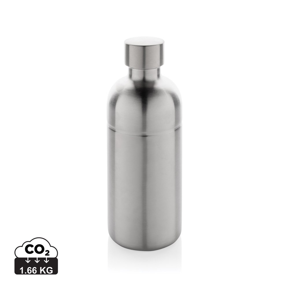 This Soda bottle is made from recycled stainless steel and is perfect for everyday carrying and hydration. The unique design even enables you to use it for carbonated drinks and it is guaranteed leakproof. Made with RCS (Recycled Claim Standard) certified recycled materials. RCS certification ensures a completely certified supply chain of the recycled materials. Total recycled content: 85% based on total item weight. BPA free. Capacity 800ml. Including FSC®-certified kraft packaging. Registered Design®.