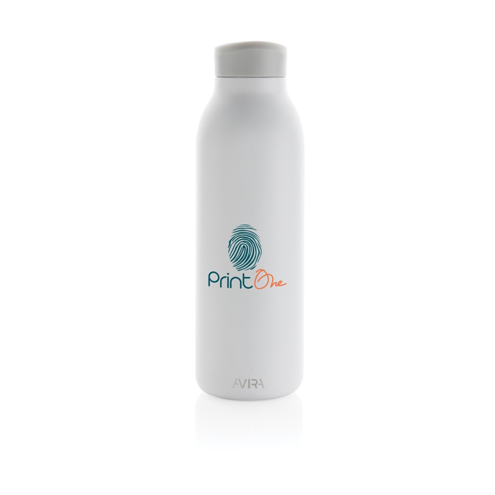 The Avior RCS Recycled stainless steel vacuum bottle is designed for long-lasting enjoyment of your drinks! The double-wall recycled stainless steel vacuum construction keeps beverages chilled for up to 20 hours or warm for up to 10 hours. This bottle fits most standard car cup holders so you can bring it with you anywhere. Made with RCS (Recycled Claim Standard) certified recycled materials. RCS certification ensures a completely certified supply chain of the recycled materials. Total recycled content: 80% based on total item weight. BPA free. Capacity 500ml. Including FSC®-certified kraft packaging. Repurpose the box into a phone holder, pencil holder or flower pot! 2% of proceeds of each Impact product sold will be donated to Water.org.