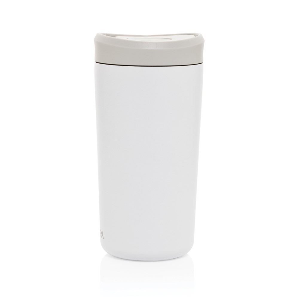 Meet the Alix—the ultimate coffee companion, crafted for those who live life on the go. With an effortless one-click, one-hand opening, it’s designed for quick sips, making it perfect for your morning drive or daily commute. The sleek, easy-clean lid complements its body, made from premium RCS-certified recycled steel, blending lower impact with style. At 400ml, it’s the ideal size for your favorite hot drinks. Packaged in eco-friendly FSC®-certified kraft paper, the box is more than just packaging—it transforms into a chic phone stand, pencil holder, or even a mini flower pot. Total recycled content: 64%, based on the item’s total weight. 2% of proceeds of each Impact product sold will be donated to Water.org.
