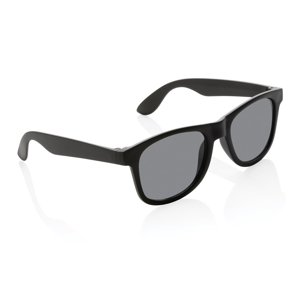 Sunglasses made with RCS certified recycled PP frame. Recycled content of frame is 100%. Total recycled content: 66% based on total item weight. RCS certification ensures a completely certified supply chain of the recycled materials. The lenses are smoky acrylic and conform to EN ISO 12312-1,UV 400 and CAT 3. Packed in an FSC® kraft sleeve.