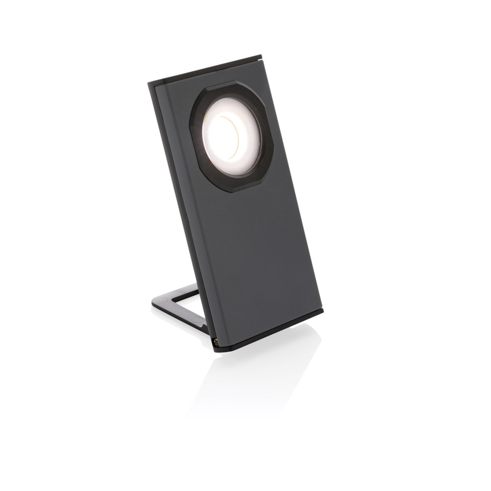 Pocket size work light with super bright COB made with RCS certified recycled ABS plastic. Total recycled content: 36% based total item weight. RCS certification ensures a completely certified supply chain of the recycled materials. The work light uses a re-chargeable A-grade 900 mah lithium battery so no need to replace the batteries. Simply re-charge via your USB socket. The work light comes with 260 lumen COB. With 2 modes:COB and COB 50%. With magnet on the back. With stand function. With type C port for re-charging. Operating time on one charge: 3 hours.