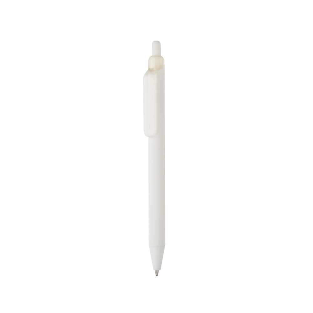The Tide GRS Certified RABS Pen Smooth Touch stands out with its unique design, reminiscent of a pen wearing a tie when you look closely at the clip and barrel. Crafted from 91% recycled ABS, this pen combines durability with style. It features a smooth rubberised silicone grip around the barrel for added comfort, ensuring a premium writing experience. The frosted coating on the plunger, clip, and tip adds a sleek touch, while the blue ink flows smoothly for up to 1200 metres. The pen operates with a click mechanism for easy use.