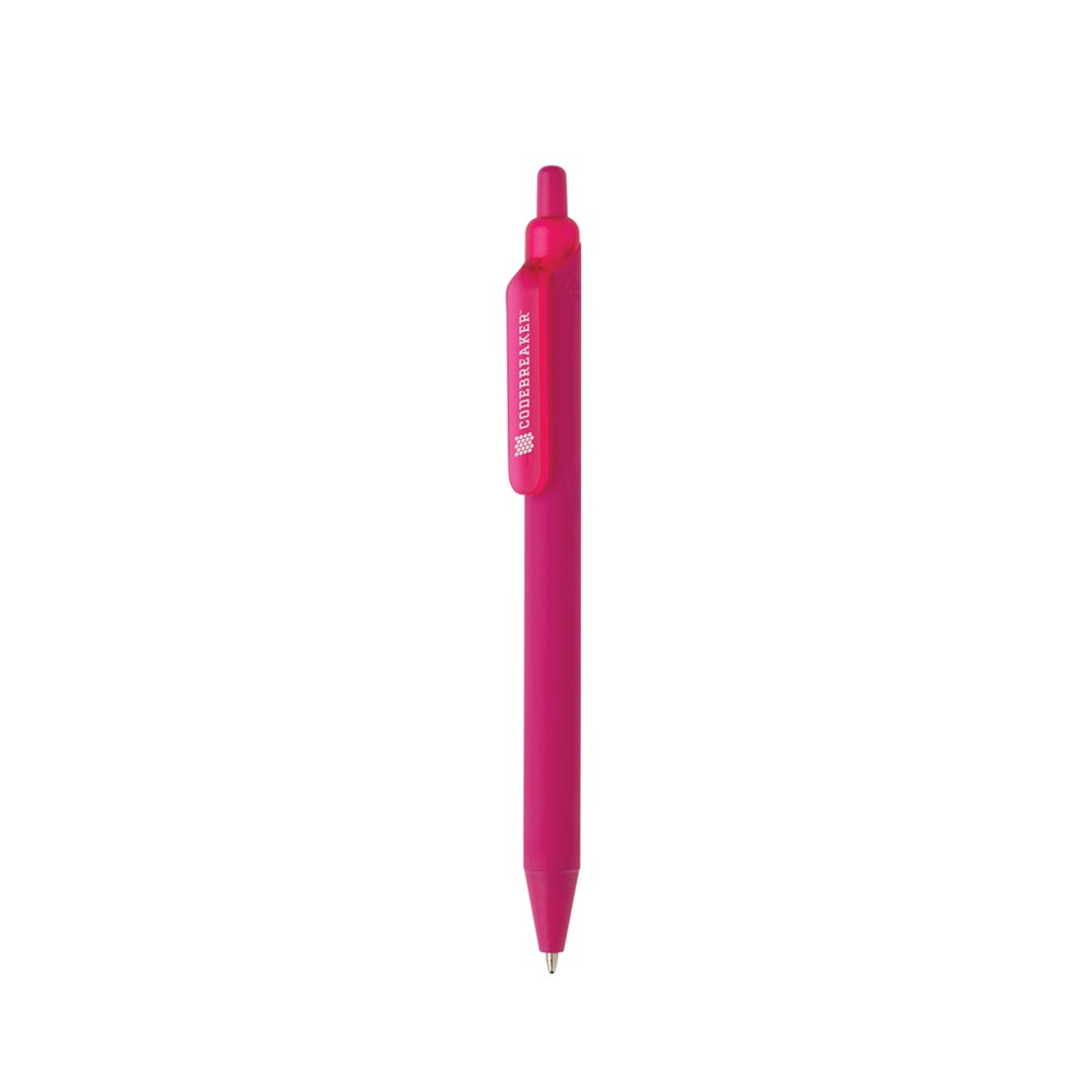 The Tide GRS Certified RABS Pen Smooth Touch stands out with its unique design, reminiscent of a pen wearing a tie when you look closely at the clip and barrel. Crafted from 91% recycled ABS, this pen combines durability with style. It features a smooth rubberised silicone grip around the barrel for added comfort, ensuring a premium writing experience. The frosted coating on the plunger, clip, and tip adds a sleek touch, while the blue ink flows smoothly for up to 1200 metres. The pen operates with a click mechanism for easy use.