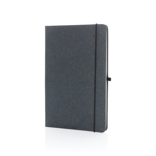 Write down all your notes and creative ideas with this A5 GRS recycled leather hardcover notebook. Stylish and with a beautiful finish. The notebook features 80 sheets/160 pages 70 gm/s of white-coloured lined recycled paper, a vertical elastic and a pen loop. 77% GRS recycled certified (recycled leather & recycled paper). Plastic free packed in FSC sleeve.