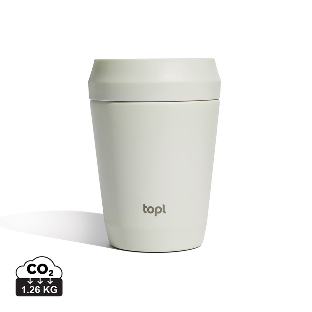 Meet the Topl Cup, your perfect fit for barista size 8oz (236ml) for your favorite small brew. Made with RCS certified recycled materials and vacuum insulated, it keeps drinks at the perfect temperature. Its patented 360° sip design and transparent lid offer practicality and style for your daily adventures, whether you’re strolling the park or commuting to work. Made with 57% recycled material.