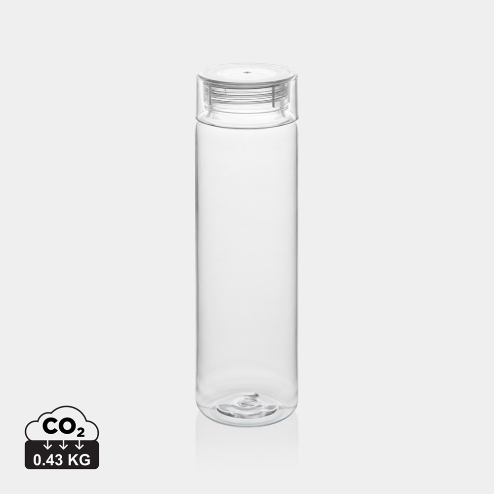 Stylish and minimalist water bottle made from 100% RCS certified RPET. Stay hydrated on the go with this handy water bottle, no matter the occasion. Large opening for easy cleaning. Hand wash only. This product is for cold drinks only. Total recycled content: 98% based on total item weight. BPA free.