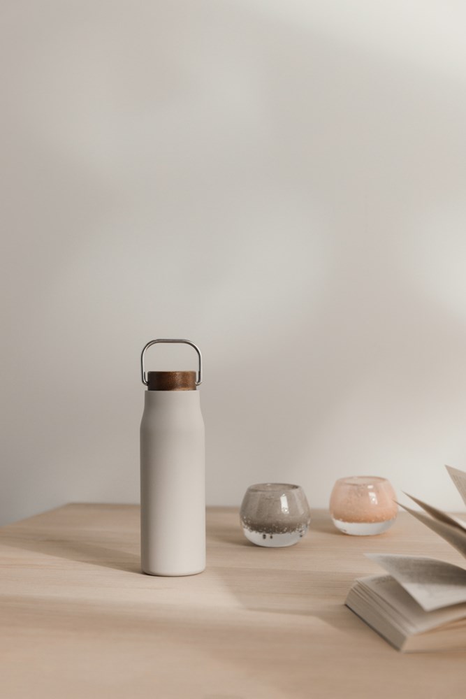 Ciro RCS recycled vacuum bottle is an elegant and functionally designed thermos bottle. The bottle has a lid of acacia wood with a metal loop, which makes the bottle easy to carry with you when you're on the go. Acacia wood is an organic material where variations in shade and color are natural characteristics. The vacuum construction with double walls in recycled stainless steel ensures that the bottle keeps the temperature intact for a long time, both hot and cold drinks. Certified by RCS (Recycled Claim Standard), RCS certification guarantees that the entire supply chain of the recycled materials is certified. The total recycled content is based on the overall product weight. This product contains 69% RCS-certified recycled stainless steel. The bottle is easy to clean and should only be cleaned by hand. Including FSC®-certified kraft packaging.