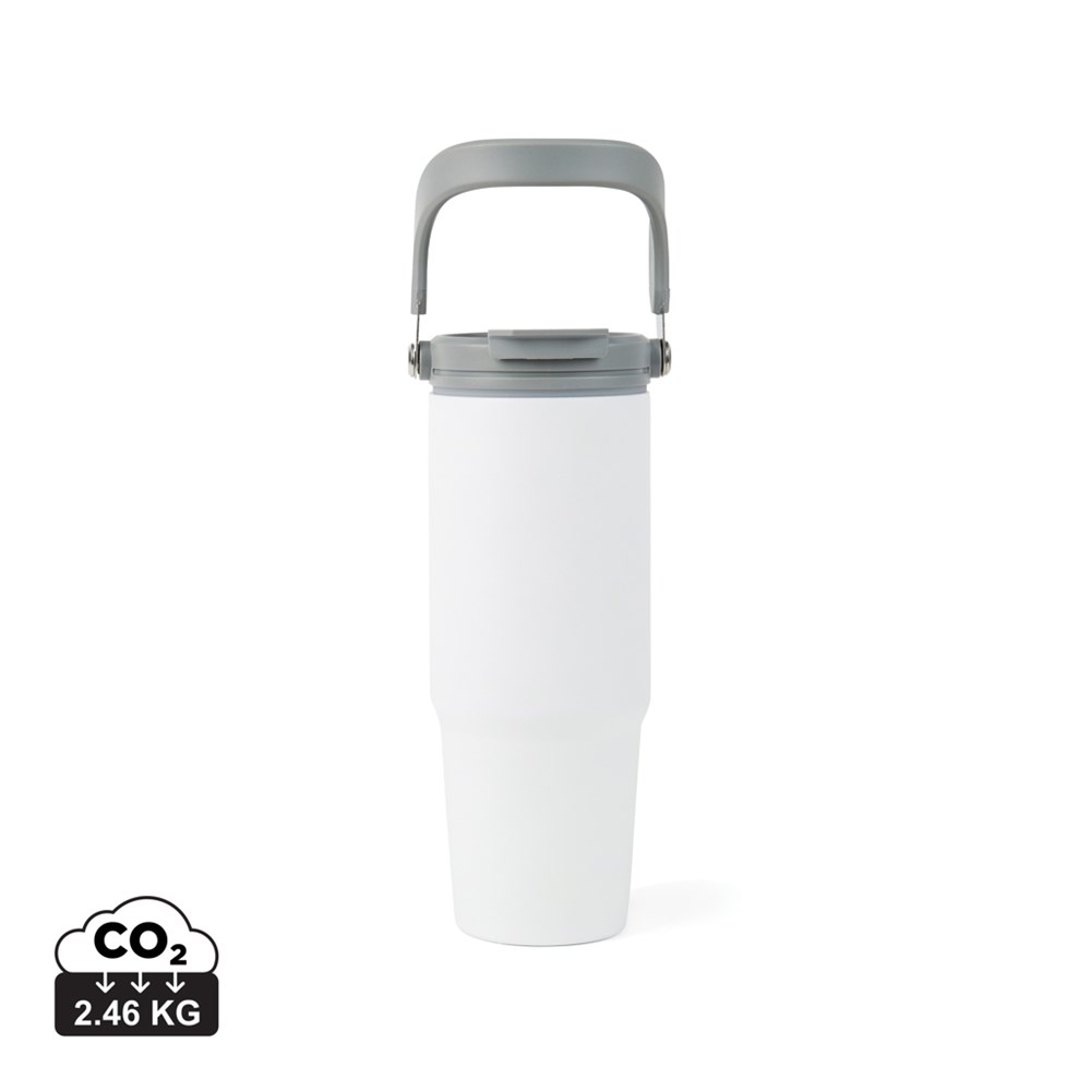This recycled stainless steel vacuum bottle features a modern design that combines functionality with style. With a generous capacity of 880 ML, it's perfect for all-day hydration on your daily adventures. The bottle includes a functional handle for easy carrying, and the lid offers two beverage intake options. The double-walled insulation keeps your drink cold for up to 16 hours and hot for up to 3 hours, ensuring you stay refreshed throughout your journey. Spillproof. Not dishwasher or microwave safe, only handwash. Including FSC®-certified kraft packaging. Certified by RCS (Recycled Claim Standard), RCS certification guarantees that the entire supply chain of recycled materials is certified. The total recycled content is based on the overall product weight. This product contains 65% RCS-certified recycled stainless steel.