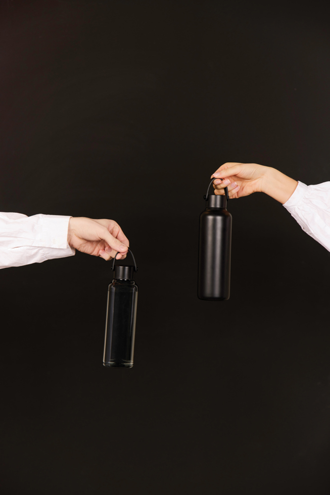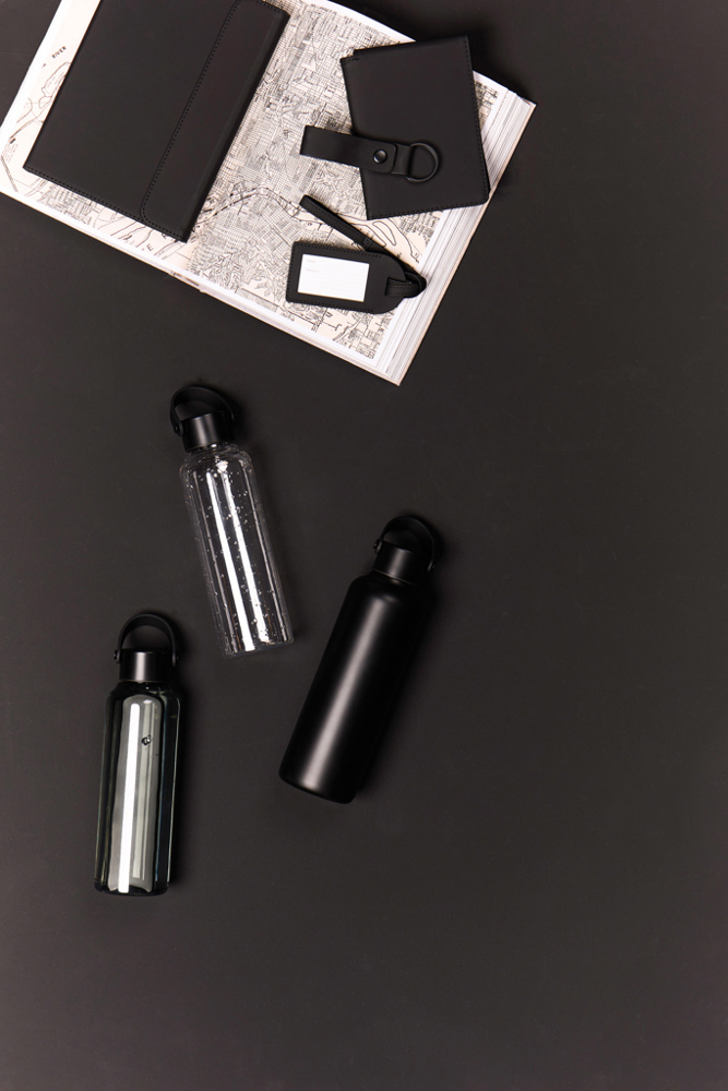 This double wall vacuum bottle, crafted from RCS certified recycled stainless steel, offers both performance and style. Designed with a minimalistic PU handle and black details that capture the essence of Baltimore series. The double walled insulation maintains drink temperatures cold for up to 12 hours, and hot for up to 6 hours, whether you need to stay cool with a chilled drink or enjoy a warm beverage on the go. Not dishwasher or microwave safe, only handwash. Certified by RCS (Recycled Claim Standard), RCS certification guarantees that the entire supply chain of recycled materials is certified. The total recycled content is based on the overall product weight. This product contains 80% RCS certified recycled stainless steel.