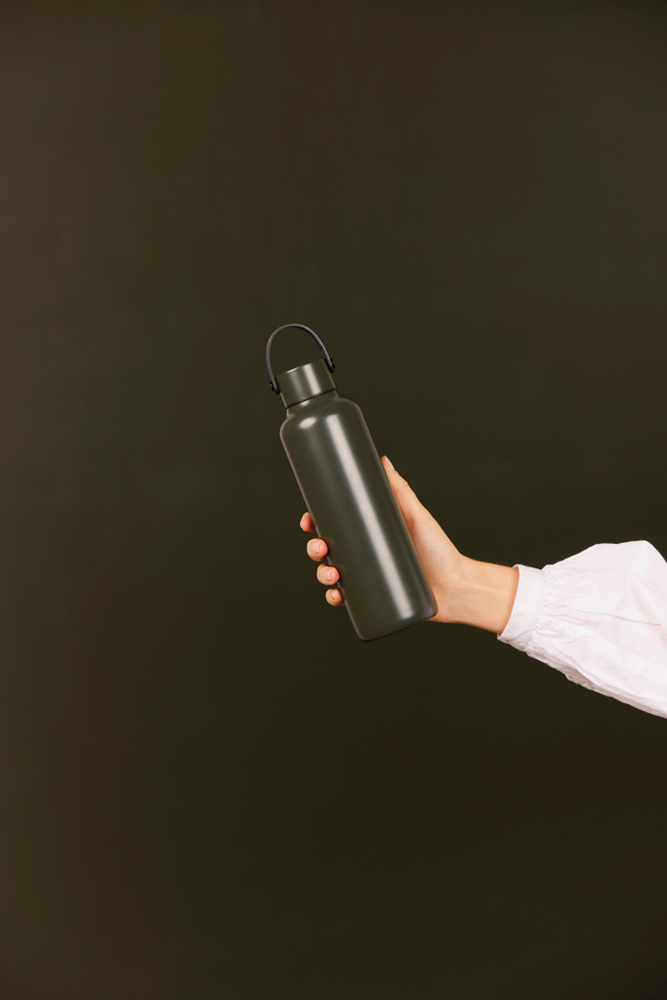 This double wall vacuum bottle, crafted from RCS certified recycled stainless steel, offers both performance and style. Designed with a minimalistic PU handle and black details that capture the essence of Baltimore series. The double walled insulation maintains drink temperatures cold for up to 12 hours, and hot for up to 6 hours, whether you need to stay cool with a chilled drink or enjoy a warm beverage on the go. Not dishwasher or microwave safe, only handwash. Certified by RCS (Recycled Claim Standard), RCS certification guarantees that the entire supply chain of recycled materials is certified. The total recycled content is based on the overall product weight. This product contains 80% RCS certified recycled stainless steel.