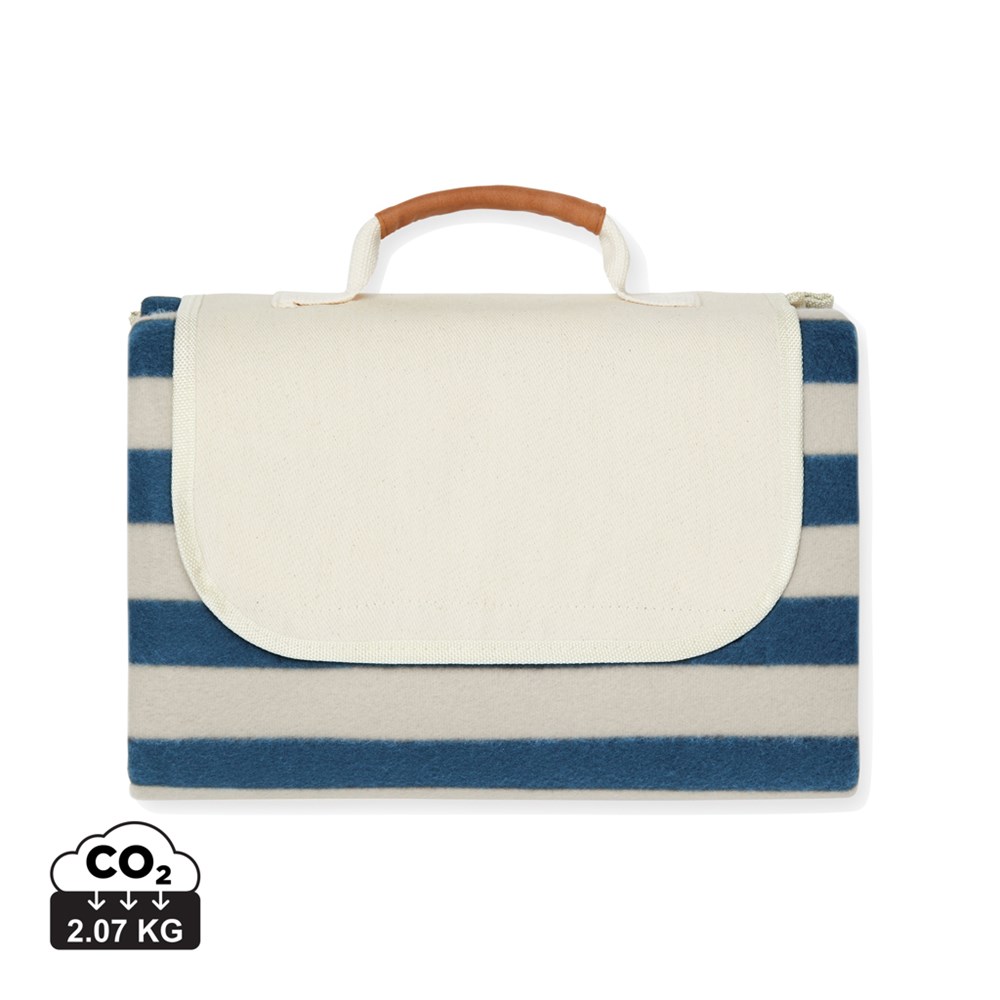 Picnic blanket in soft fleece with cotton canvas and details in PU. Clever construction makes it easy to fold up and take with you. The fleece is crafted GRS certified recycled PET. The back is made in PEVA, which repels water. Certified by GRS (Global Recycled Standard), GRS certification guarantees that the entire supply chain of the recycled materials is certified. The total recycled content is based on the overall product weight. This product contains 51% GRS recycled fleece.