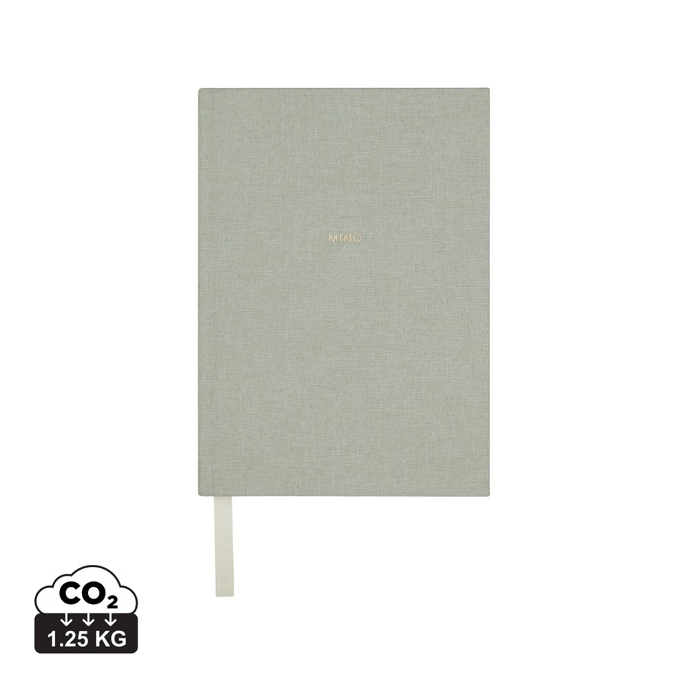 Dive into self-discovery and mindfulness with our Mind journal today and capture your daily reflections. With pre-printed A5 template pages, including prompts like rating your day, describing meaningful interactions, and documenting moments of presence, it's easy to chronicle your journey. Featuring GRS-certified paper, is designed to guide you through thoughtful introspection. Complete with a ribbon bookmark and a fabric cover, it seamlessly blends functionality with elegance, whether on your desk or bedside table. Certified by GRS (Global Recycled Standard), GRS certification guarantees that the entire supply chain of the recycled materials is certified. The total recycled content is based on the overall product weight. This product contains 73% GRS certified recycled paper.