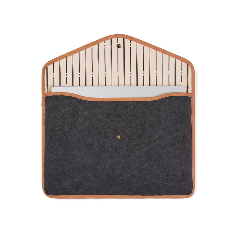 Keep your laptop safe with a classic and stylish sleeve from our Bosler series. Closed with a press button and padded for safe storage. Made of recycled canvas with details in PU. Please note: Display dimensions may vary from laptop dimensions. Certified by GRS (Global Recycled Standard), GRS certification guarantees that the entire supply chain of the recycled materials is certified. The total recycled content is based on the overall product weight.This product contains 37% GRS certified recycled cotton and 25% GRS recycled polyester.