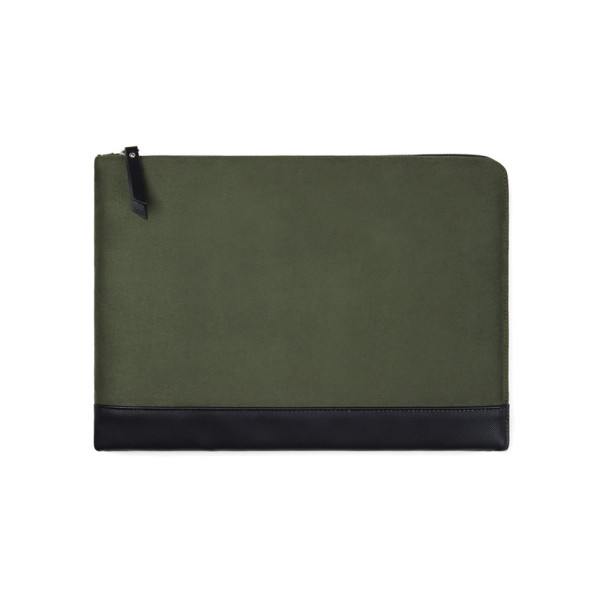 Protect your laptop in style with this sleek padded sleeve. Features an extra long zipper closure for easy access. Inside, a convenient pocket for smaller items. Please note: Display dimensions may vary from laptop dimensions. Marlow series crafted from recycled faux suede with PU details and lining in recycled polyester. Finished with sleek silver hardware. Certified by RCS (Recycled Claim Standard), RSC certification guarantees that the entire supply chain of recycled materials is certified. The total recycled content is based on the overall product weight. This product contains 49% RCS certified recycled polyester and 3% RCS certified recycled polyurethane.