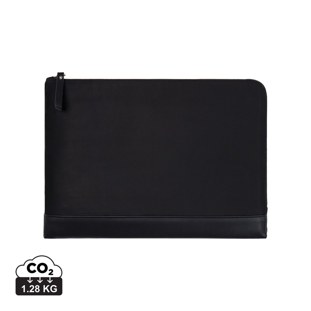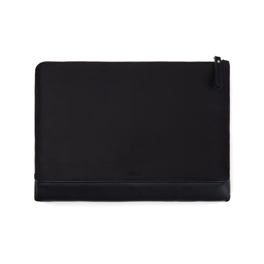 Protect your laptop in style with this sleek padded sleeve. Features an extra long zipper closure for easy access. Inside, a convenient pocket for smaller items. Please note: Display dimensions may vary from laptop dimensions. Marlow series crafted from recycled faux suede with PU details and lining in recycled polyester. Finished with sleek silver hardware. Certified by RCS (Recycled Claim Standard), RSC certification guarantees that the entire supply chain of recycled materials is certified. The total recycled content is based on the overall product weight. This product contains 49% RCS certified recycled polyester and 3% RCS certified recycled polyurethane.