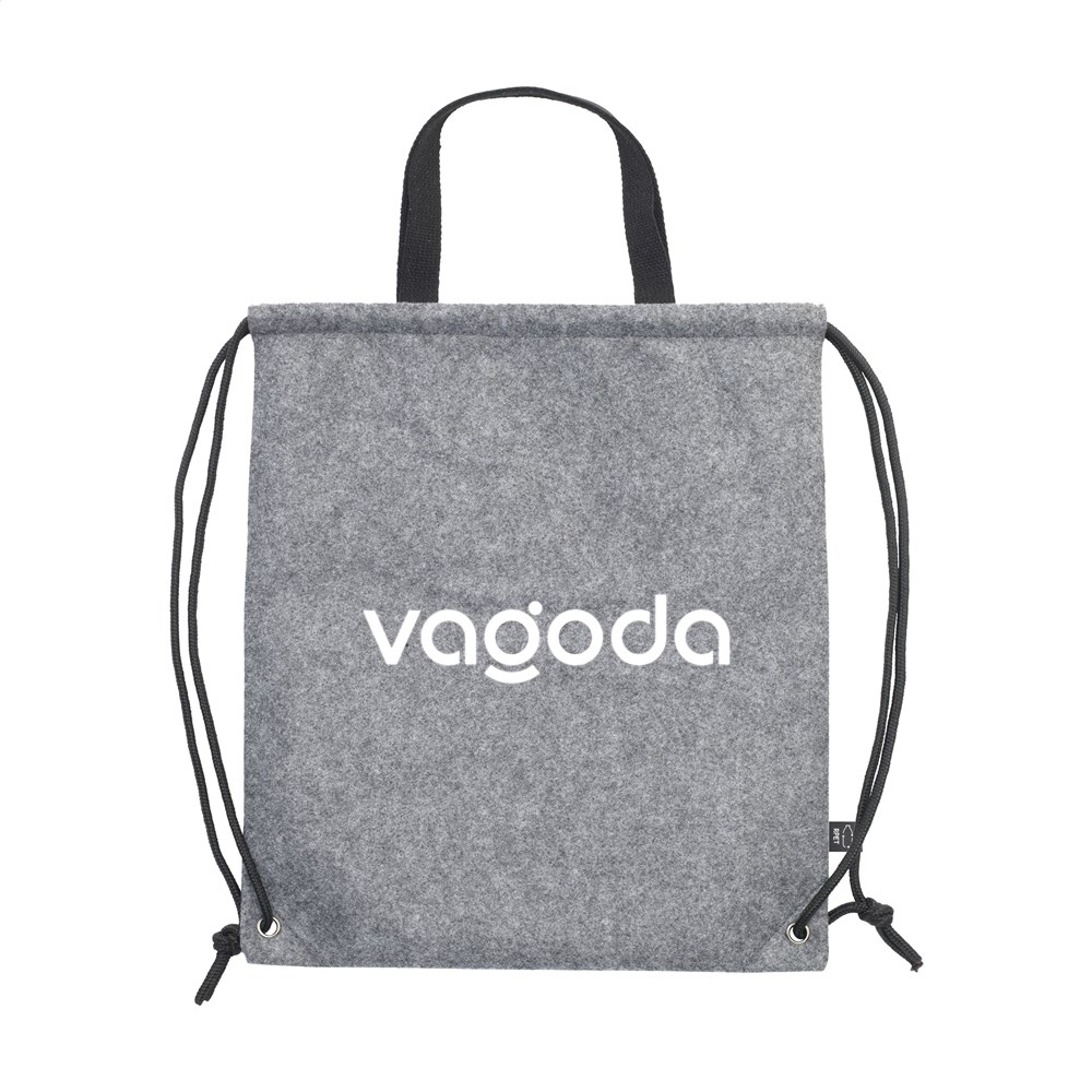 Backpack made from RPET felt (made from recycled PET bottles and recycled textiles). With drawstring and handy carrying loops. Capacity approx. 10 litres. GRS-certified. Total recycled material: 82%.