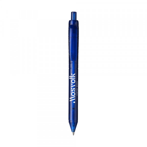 Blue ink ballpoint pen with transparent barrel made from 100% recycled PET. GRS-certified. more