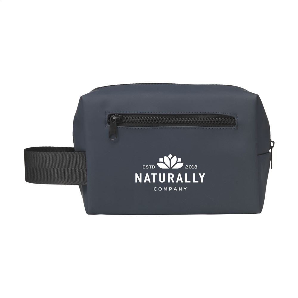 Practical and sturdy toiletry bag for the storage of personal care accessories. The outside of the material of this toiletry bag is made from water-repellent PU, 7% recycled PU and 32% recycled polyester. This toiletry bag is very robust but also easy to keep clean. Ideal for use in bathrooms and shower rooms. The inside is finished with a 210D RPET polyester lining. A generously sized zip pocket features elastic straps and a handy side pocket, making it easy to keep all of your essentials organised. In addition, this toiletry bag has a second zipper pocket on the front and a handy carrying loop. A sturdy all-rounder for daily use. RCS-certified. Total recycled material: 39%.