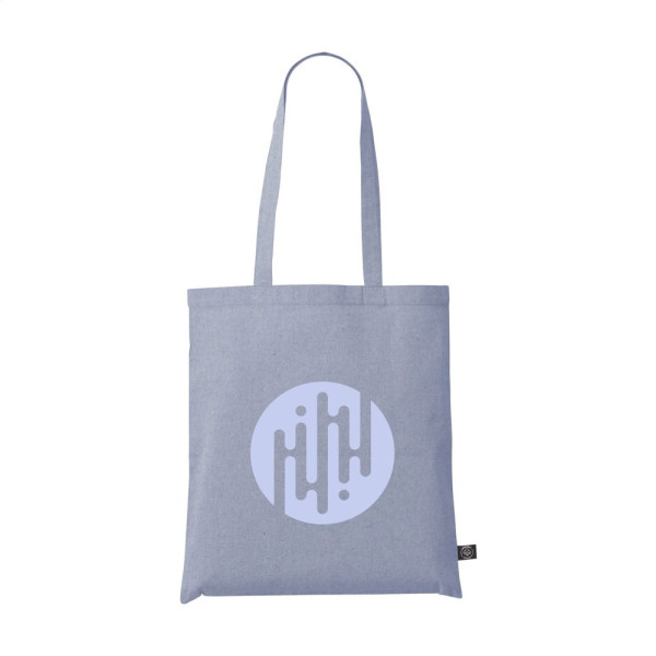 Shopping bag made from 80% recycled melange cotton and 20% recycled polyester (180 g/m²). With long handles. GRS-certified. Capacity approx. 8 litres. This cotton is recycled. As a result, the colour may vary per product.