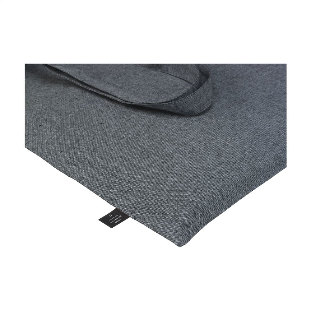 Shopping bag made from 80% recycled melange cotton and 20% recycled polyester (180 g/m²). With long handles. GRS-certified. Capacity approx. 8 litres. This cotton is recycled. As a result, the colour may vary per product.
