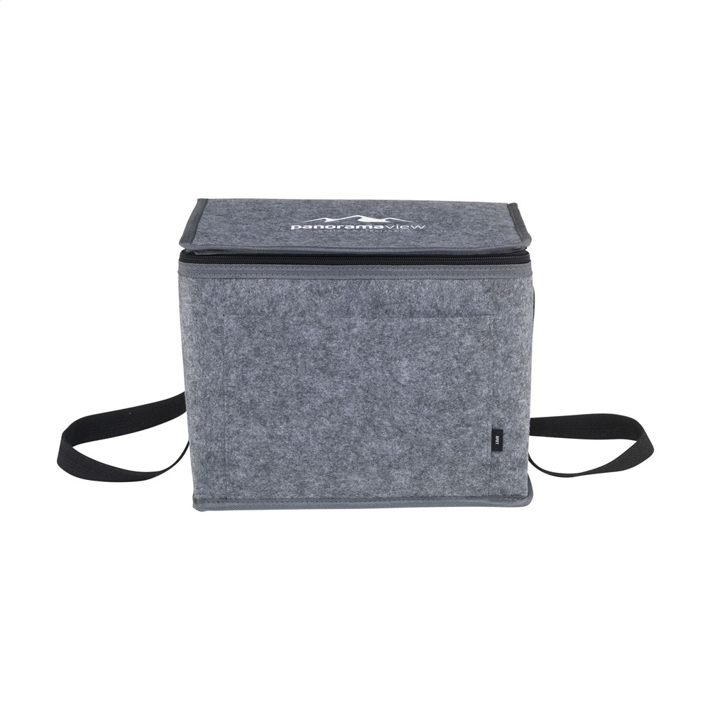 Large cooler bag made from RPET felt. Lining of 100% PEVA. With carrying loops. GRS-certified. Total recycled material: 63%. Capacity approx. 14 litres.