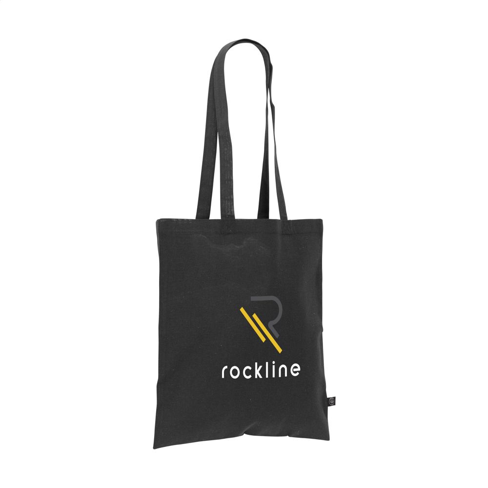 Shopping bag with long handles made from 80% recycled cotton and 20% recycled polyester (150 g/m²). GRS-certified. Total recycled material: 100%. Capacity approx. 8 litres.