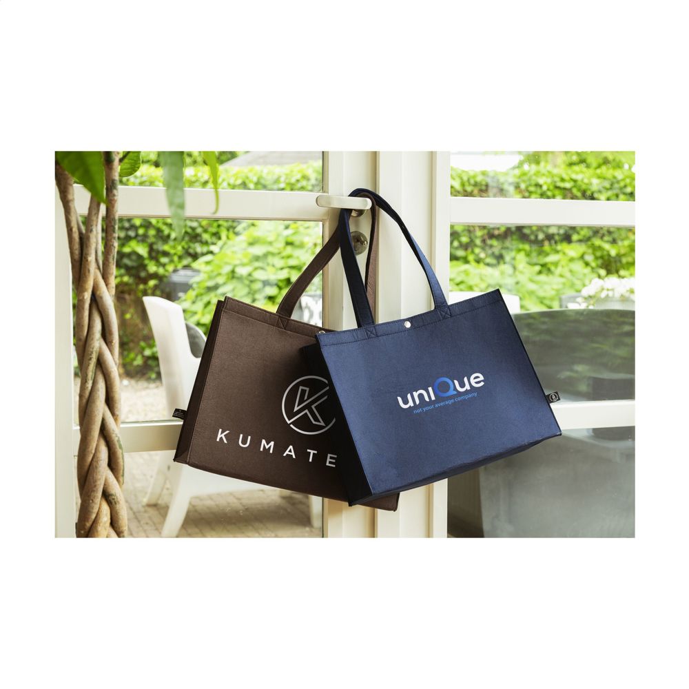 Sturdy, generously sized Shopping bag made from RPET felt. This bag offers lots of space and features long handles and a press stud close. The material is of high-quality. GRS-certified. Total recycled material: 95%. Capacity approx. 20 litres.