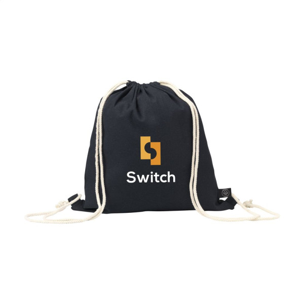 Drawstring backpack made from 80% recycled, melange cotton and 20% recycled polyester (150 g/m²). GRS-certified. Total recycled material: 100%. Capacity approx. 7 litres.