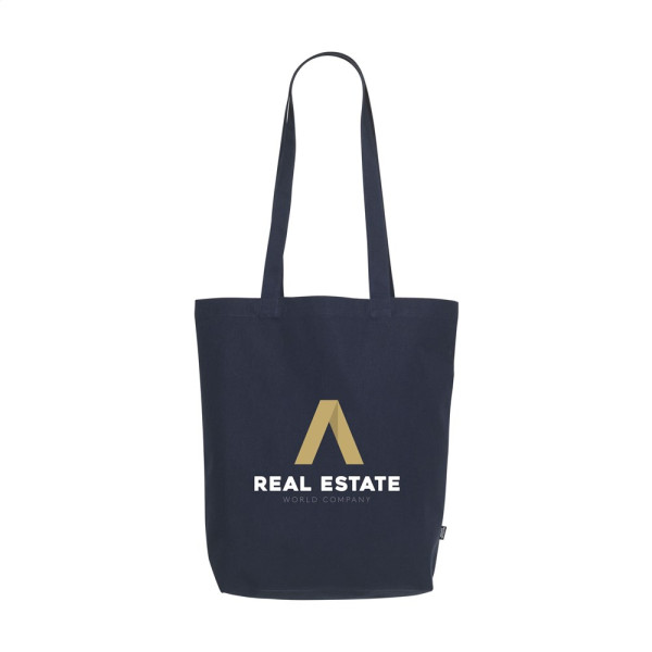 Shopping bag with long handles. This bag is made from extra heavy quality recycled cotton canvas (260 g/m²). GRS-certified. Total recycled material: 92%. Capacity approx. 15 litres.
