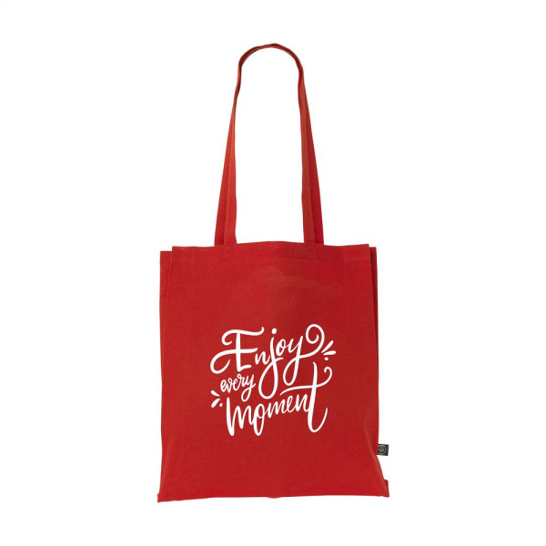 Sturdy shopping bag with long handles, made from 80% mixed recycled cotton canvas and 20% recycled polyester (150 g/m²). GRS-certified. Total recycled material: 100%. Capacity approx. 12 litres.