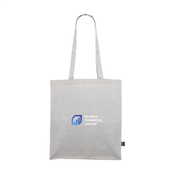 Sturdy shopping bag with long handles, made from 80% mixed recycled cotton canvas and 20% recycled polyester (150 g/m²). GRS-certified. Total recycled material: 100%. Capacity approx. 12 litres.