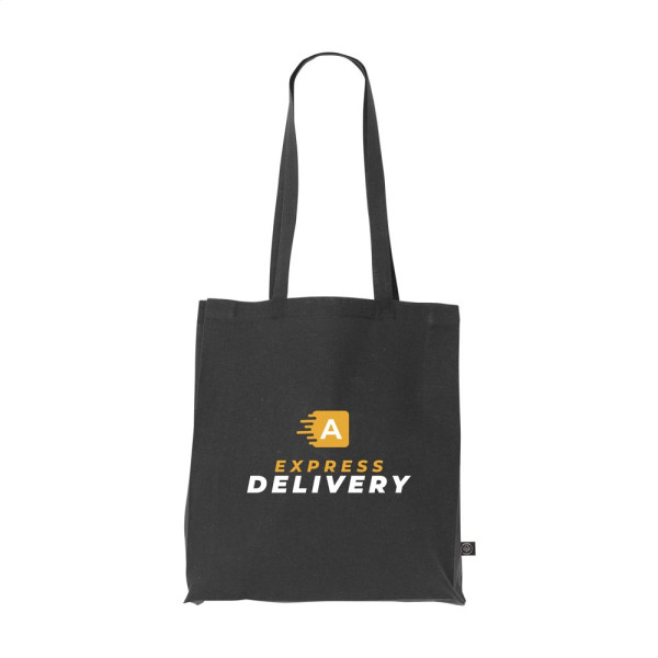 Sturdy shopping bag with long handles, made from 80% mixed recycled cotton canvas and 20% recycled polyester (150 g/m²). GRS-certified. Total recycled material: 100%. Capacity approx. 12 litres.
