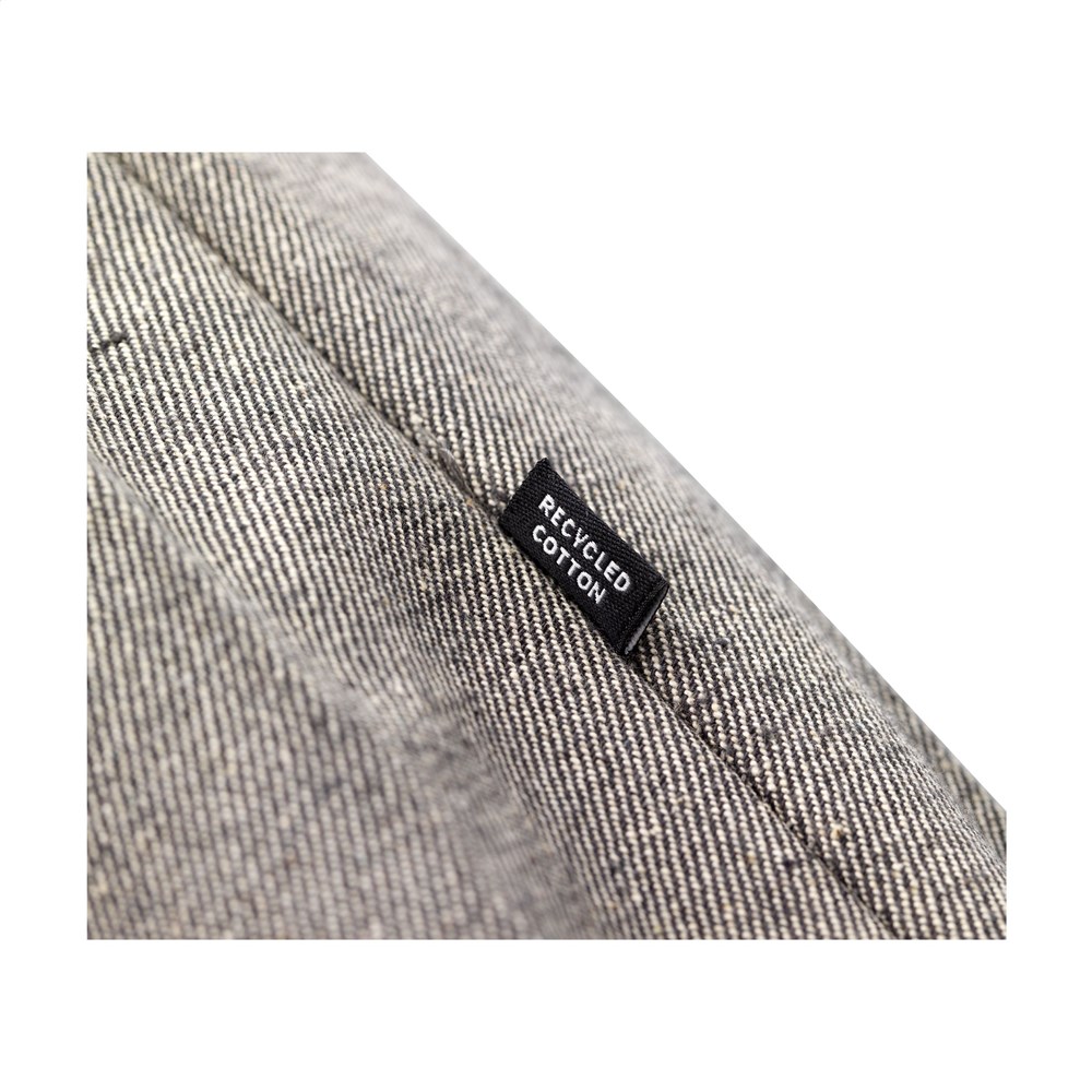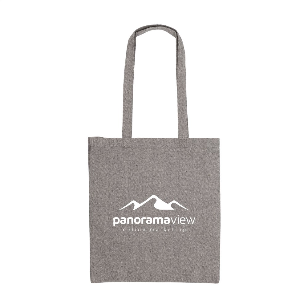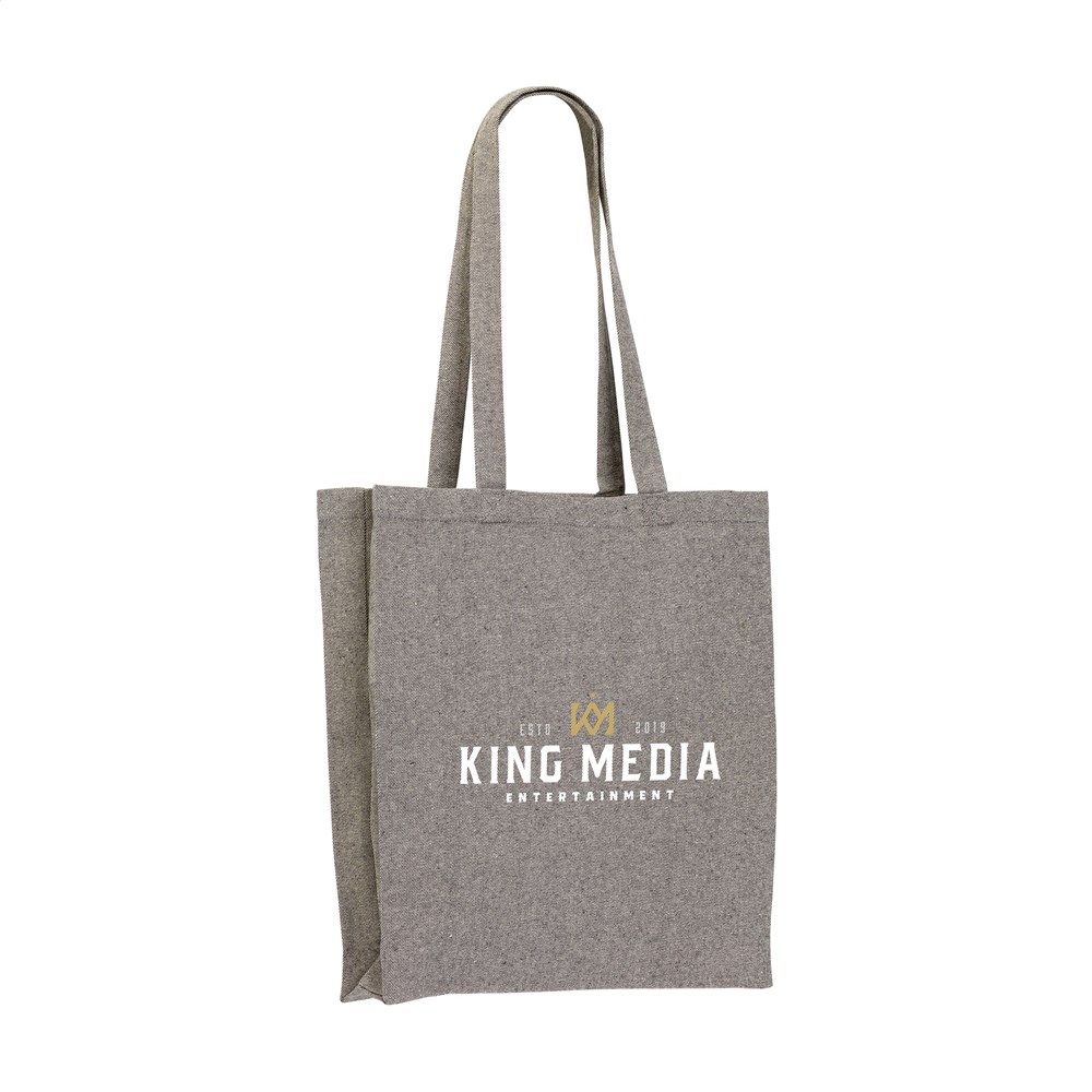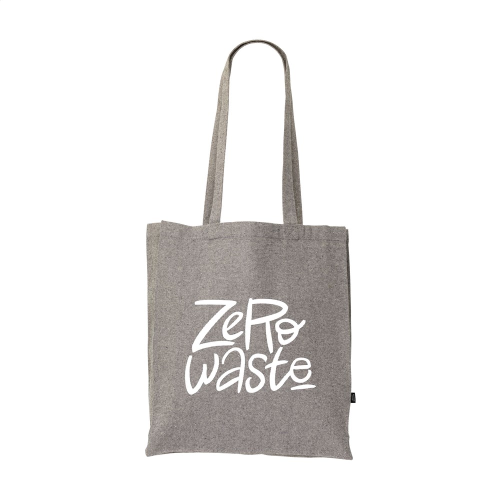 Shopping bag with long handles, made from 80% recycled, melange cotton canvas and 20% recycled polyester (280 g/m²). GRS-certified. Total recycled material: 100%. Capacity approx. 12 litres. This cotton is recycled. As a result, the colour may vary per product.