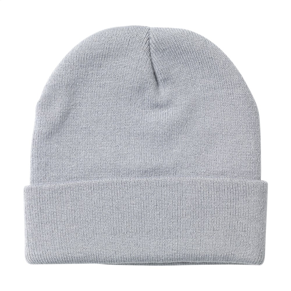 Knitted hat with fold over. Made from 100% RPET polyester. A popular item, keeps you nice and warm with good quality material. One-size. GRS-certified. Total recycled material: 100%.