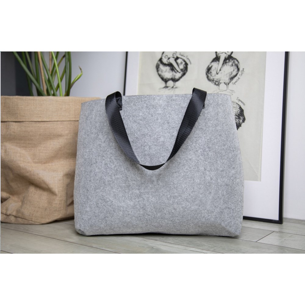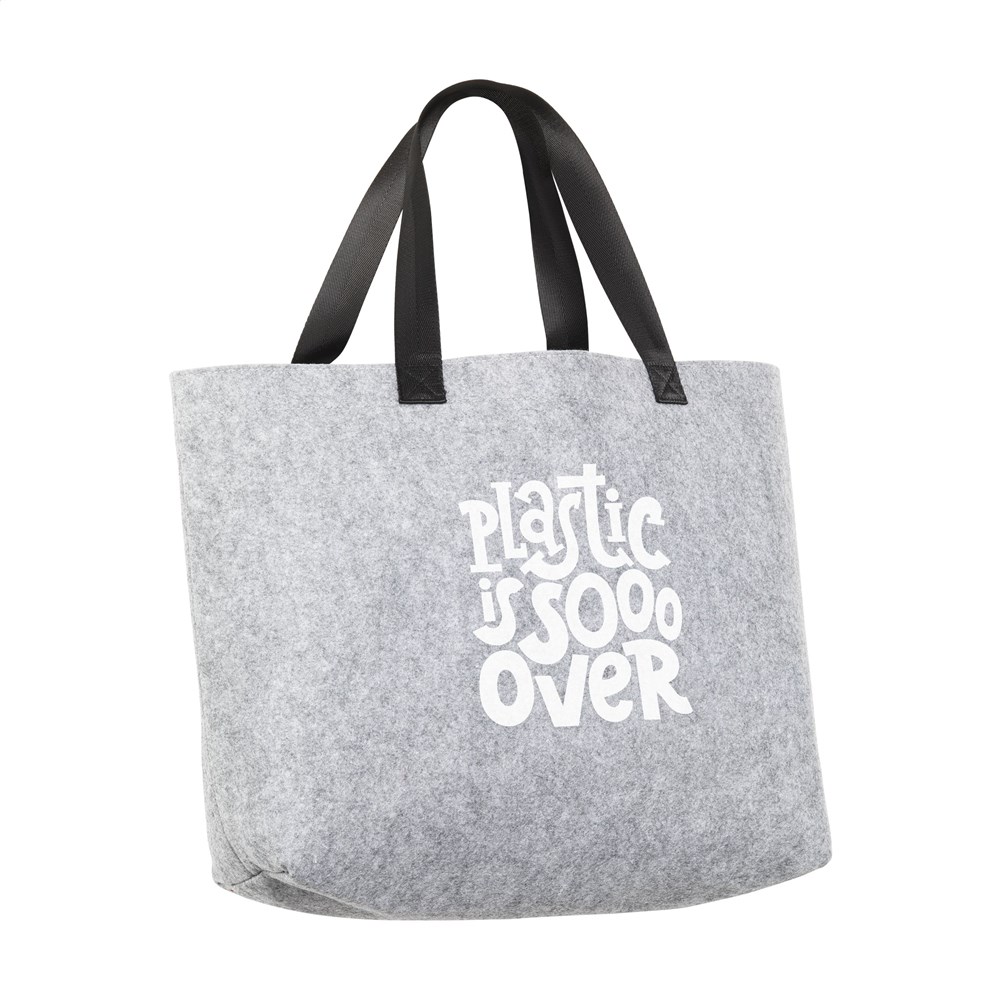 Shoulder bag in RPET felt. This felt comes from recycled PET bottles and recycled textiles. This stylishly designed bag goes with any outfit and is large enough to carry all your daily essentials. GRS-certified. Total recycled material: 92%. Capacity approx. 20 litres.