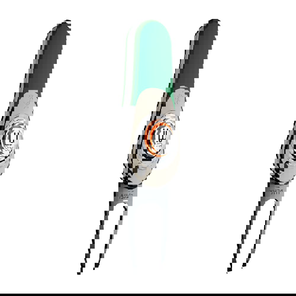 Lightweight, automatic fold-in pitchfork made of high quality ABS plastic, equipped with a magnetic ball marker with doming