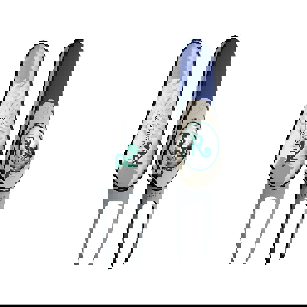 Lightweight, automatic fold-in pitchfork made of high quality ABS plastic, equipped with a magnetic ball marker with doming and a full colour print at the back