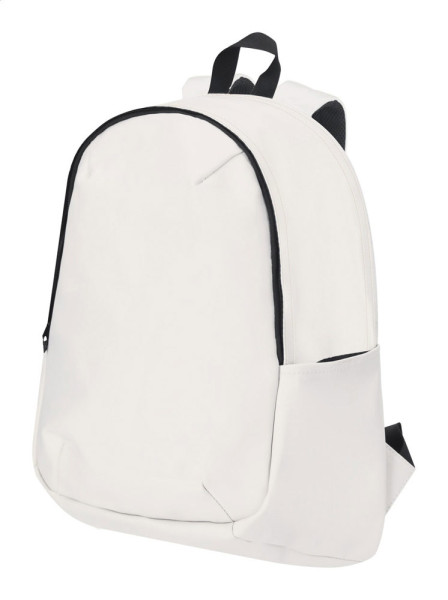 Soft PU leather backpack with zipped compartment, padded laptop (15") compartment, side pockets, padded back and shoulder straps.