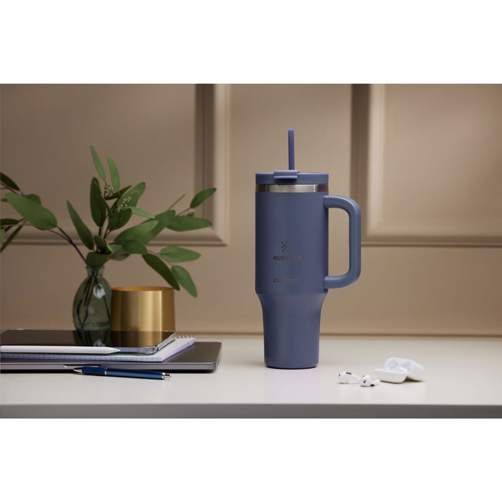 Large, double-walled Contigo® stainless steel drinking cup with generous plastic handle. The multifunctional plastic screw cap has a lockable drinking opening and an opening with a straw. When closed, the lid is leak proof. Suitable for cold drinks (not for carbonated drinks). THERMALOCK™ technology keeps drinks cool for up to 29 hours. Without the straw, the temperature is maintained thanks to the silicone seal in the lid. The cup has a matt, scratch-resistant coating. The conical, narrow base means the cup fits into almost any cup holder, making it perfect for on the go. Easy to clean. The cup, lid and straw are dishwasher-safe (place in the top rack). Washing by hand is recommended to preserve the imprint. Odourless and taste-free. Stay hydrated all day long with this huge tumbler. Capacity 1,200 ml. STOCK AVAILABILITY: Up to 1000 pcs accessible within 10 working days plus standard lead-time. Subject to availability. Contigo: The best in quality, design and technology. Immediately recognisable by its sleek and stylish design, strong and solid. Comes with a 2-year manufacturer's warranty.