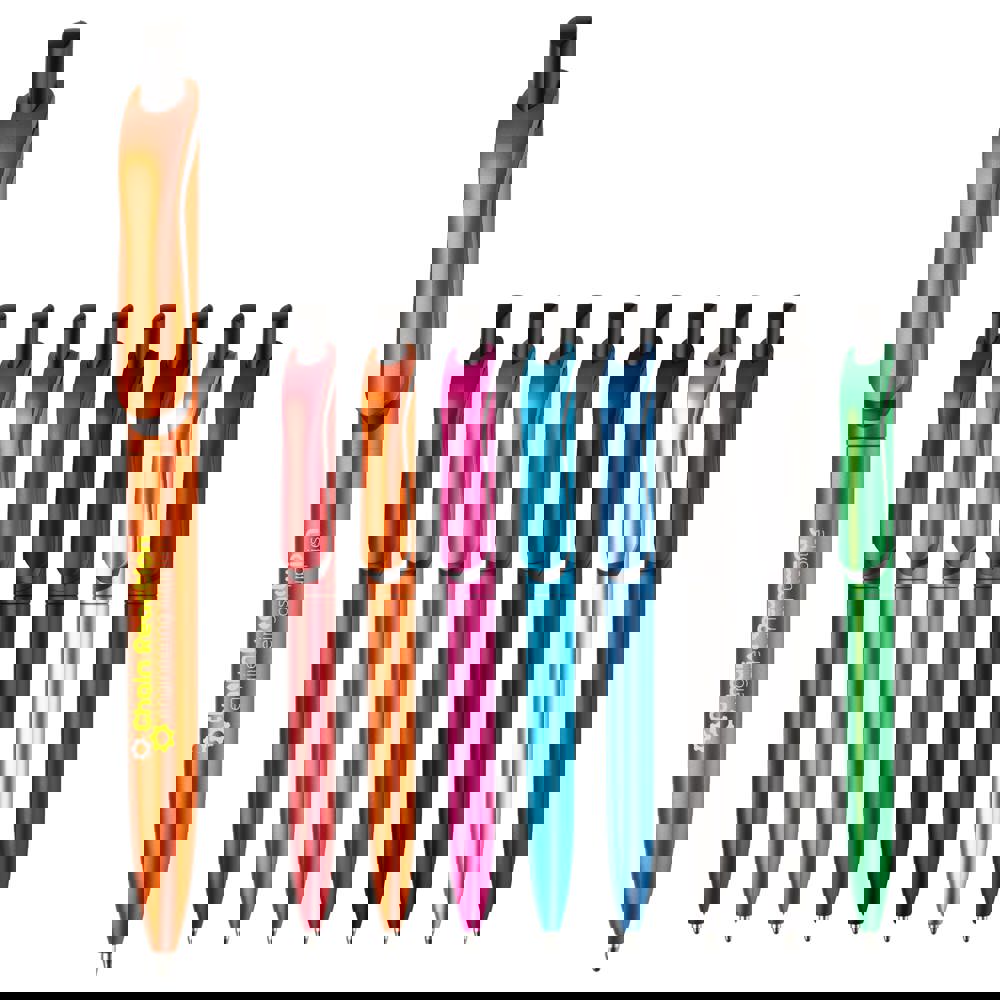A TopPoint design ball pen in trendy metallic colours. This pen has a solid clip and a Jumbo refill with blue writing ink.