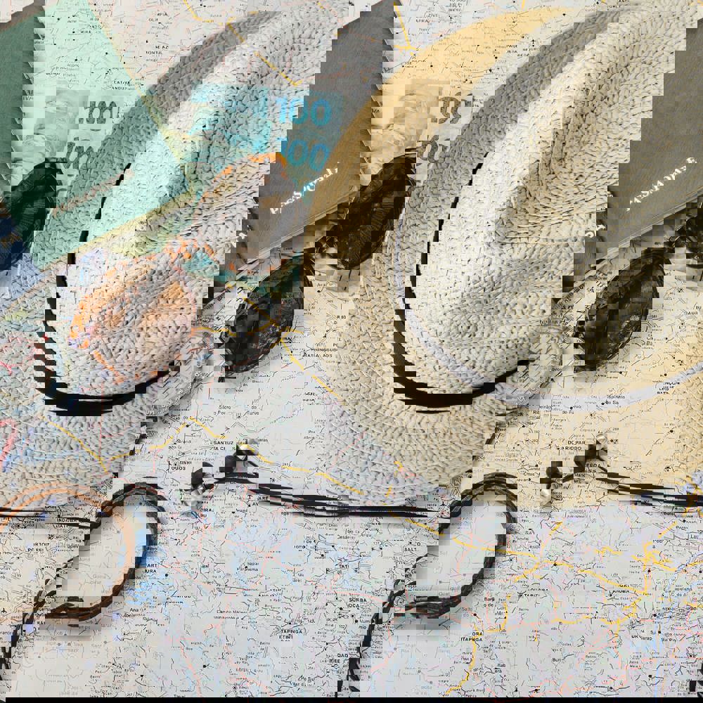 Plant straw hat with coloured band