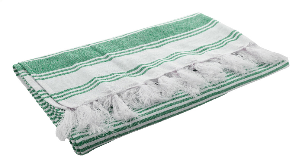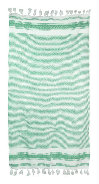 Two-tone striped pareo beach towel in 70% cotton and 30% polyester. 210 g/m².