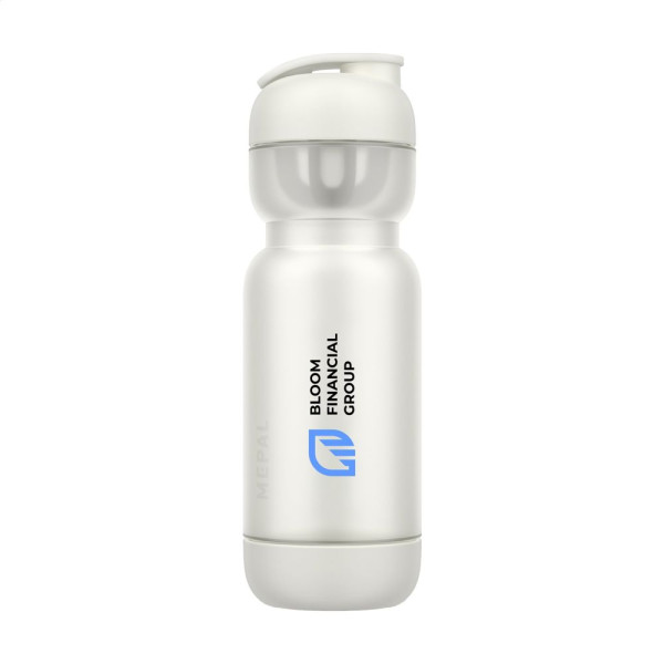 Shaker cup from the Mepal brand. Made from PETG and PP plastic. The innovative design has a screw-on lid with a sealable drinking opening. The cap slides easily to the side for comfortable drinking. This shaker cup is ideal for making lump-free protein shakes and smoothies. The large openings make it easy to add ice cubes or fruit. Thanks to the built-in mixer and measuring scale, you can easily mix your favourite drink without lumps. Whether you're on the go or at the gym, this leak-proof cup keeps your drink within reach. The removable bottom makes cleaning easy. Dishwasher-safe. Washing by hand is recommended to preserve the imprint. Comes with a 2-year Mepal manufacturer's warranty. Capacity 800 ml. Made in Holland. STOCK AVAILABILITY: Up to 1000 pcs accessible within 10 working days plus standard lead-time. Subject to availability.