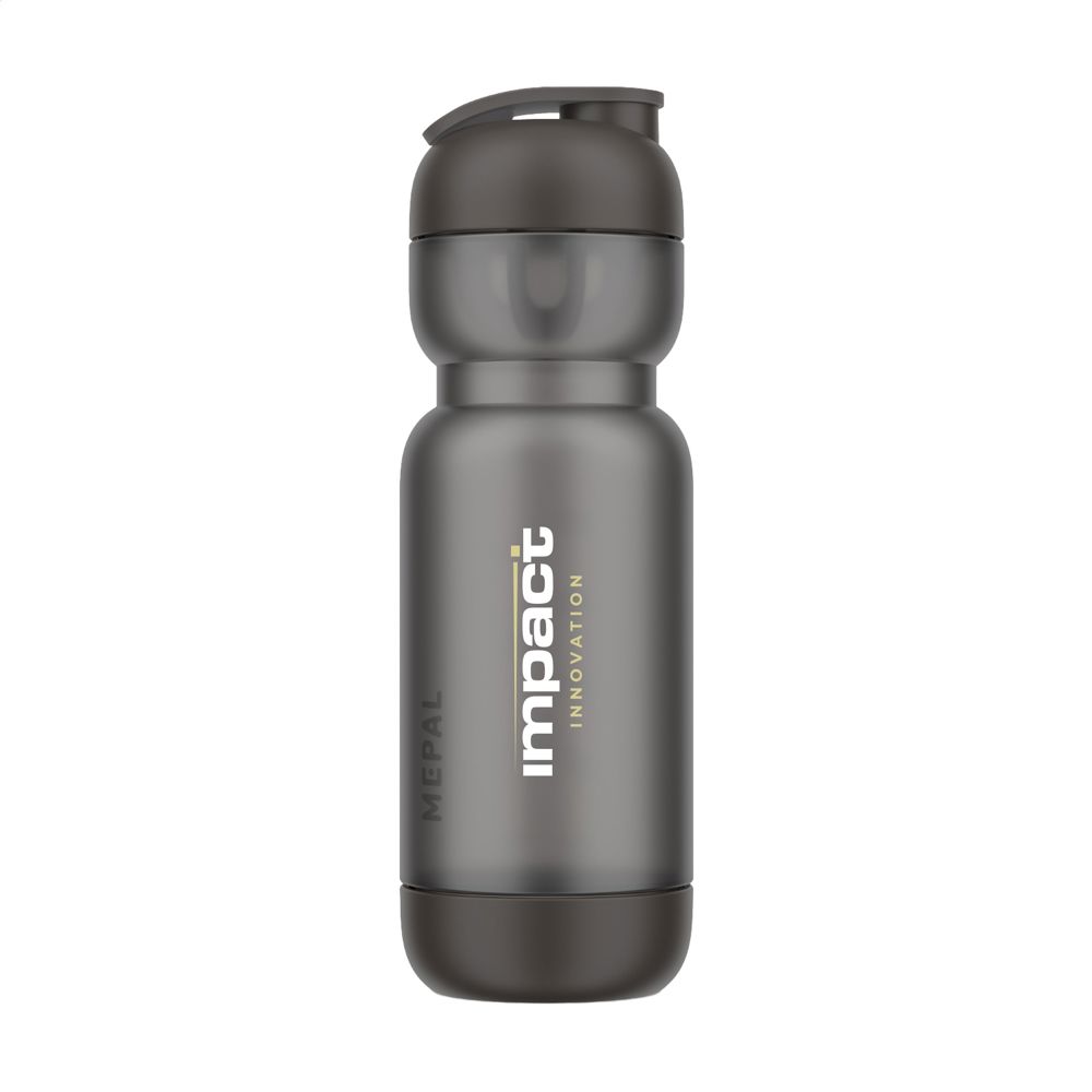Shaker cup from the Mepal brand. Made from PETG and PP plastic. The innovative design has a screw-on lid with a sealable drinking opening. The cap slides easily to the side for comfortable drinking. This shaker cup is ideal for making lump-free protein shakes and smoothies. The large openings make it easy to add ice cubes or fruit. Thanks to the built-in mixer and measuring scale, you can easily mix your favourite drink without lumps. Whether you're on the go or at the gym, this leak-proof cup keeps your drink within reach. The removable bottom makes cleaning easy. Dishwasher-safe. Washing by hand is recommended to preserve the imprint. Comes with a 2-year Mepal manufacturer's warranty. Capacity 800 ml. Made in Holland. STOCK AVAILABILITY: Up to 1000 pcs accessible within 10 working days plus standard lead-time. Subject to availability.